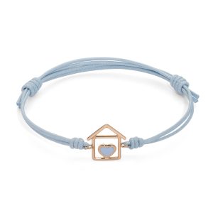 Bracciale cordino con casa e cuore smaltato celeste