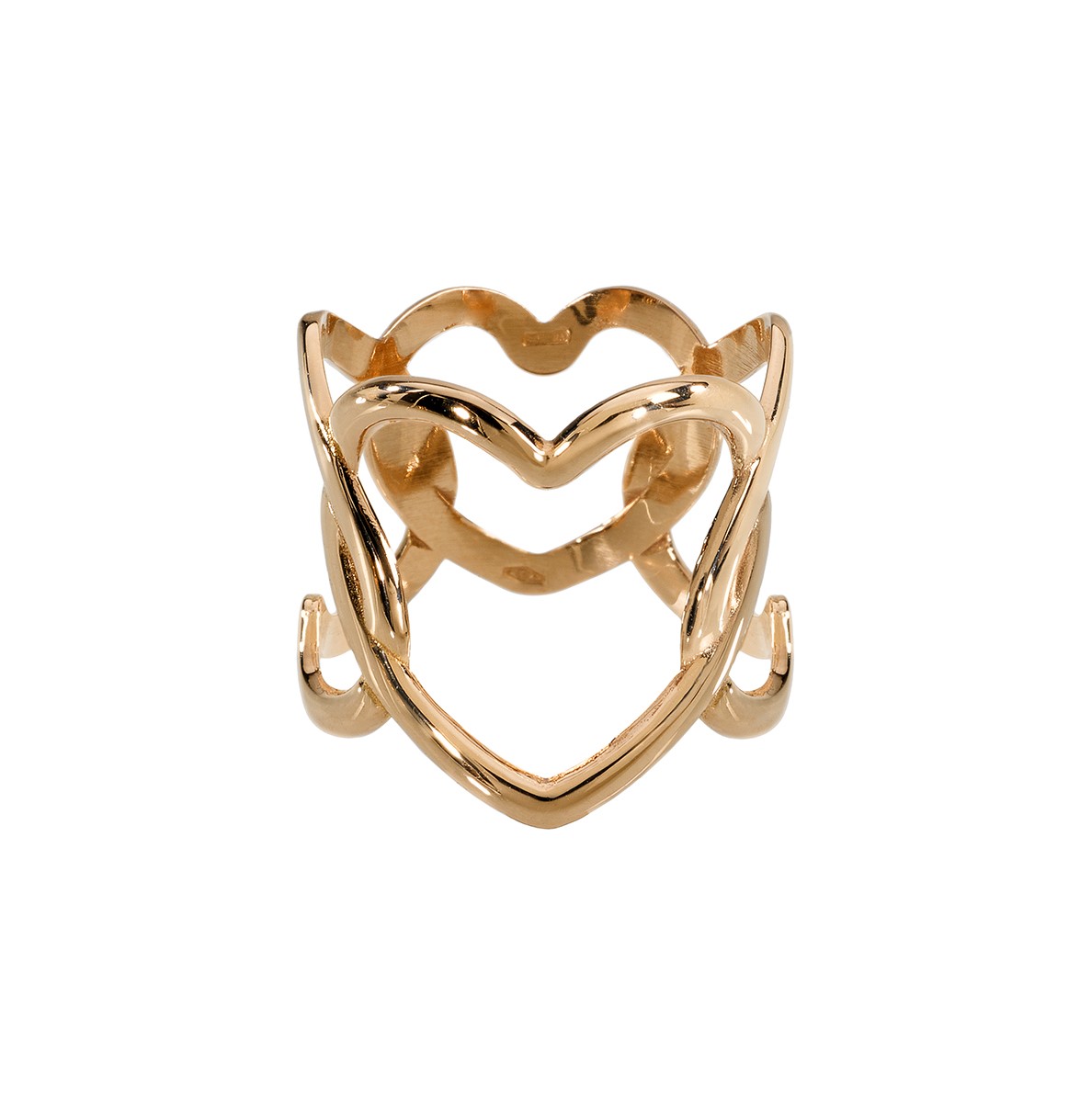 Anello a giro con cuori in oro rosa 18K.