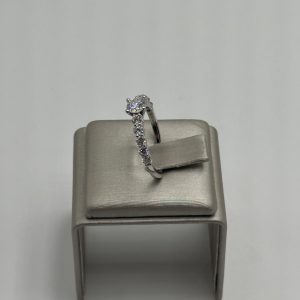 Anello in oro bianco 18K con diamante centrale G VVS2 di ct. 0,51 e diamanti G VVS di ct. totali 0,68.