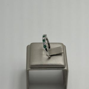 Anello in oro bianco 18K con diamanti di ct. 0,22 e smeraldi di ct. 0,30.