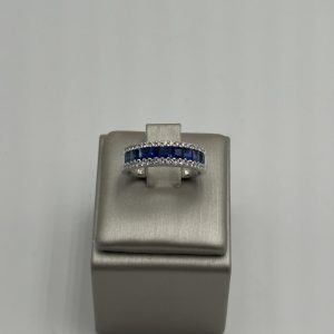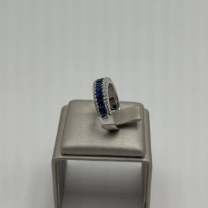 Anello in oro bianco 18K con zaffiri blu di ct. 1,32 e diamanti bianchi di ct. 0,30.