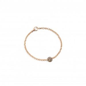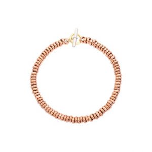 Bracciale pepita della Dodo in oro rosa 9K, catena in argento 925 e anello brisè in oro giallo 18K. Ago in argento 925 incluso.