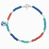 Bracciale Rondelle in plastica riciclata e argento 925 con cubetti in argento 925, catena e t-bar in argento 925, anello brisé in acciaio.