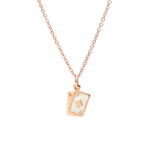 Ciondolo carte da gioco in oro rosa 9K e smalto perlato bianco. Cordino nero incluso.
