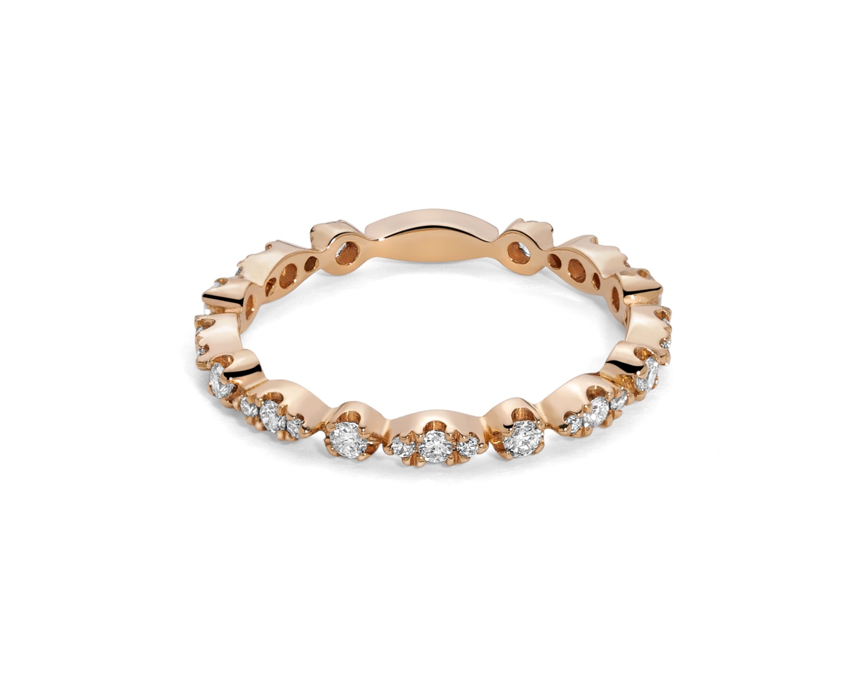 Questo anello in oro 18K è interamente incastonato con diamanti bianchi di ct. 0,33. Un gioiello perfetto per essere abbinato in un gioco di infinite combinazioni.